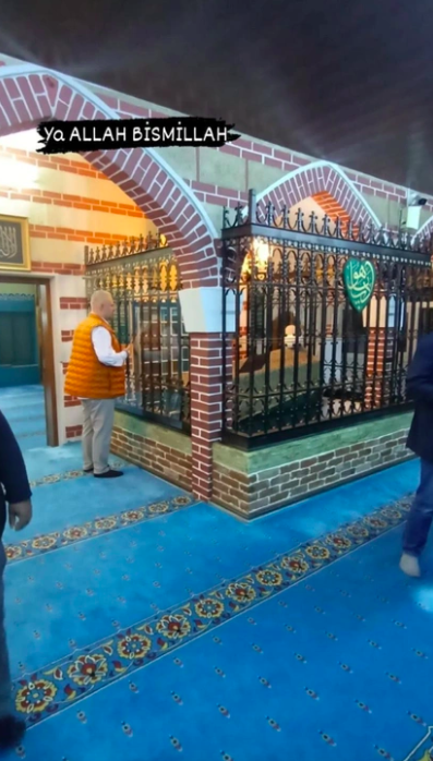 Türbede dua ederken çekilen fotoğrafa “Ya Allah Bismillah” yazılması da dikkat çekmişti.