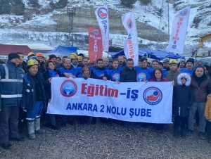 Eğitim İş Ankara 2 No’lu Şube, 24 Kasım Öğretmenler Günün’de özelleştirmeye ve varlık satışına karşı Çayırhan’da maden ocaklarında direnen madencilere ve santal işçilerine dayanışma ziyaretinde bulundu.